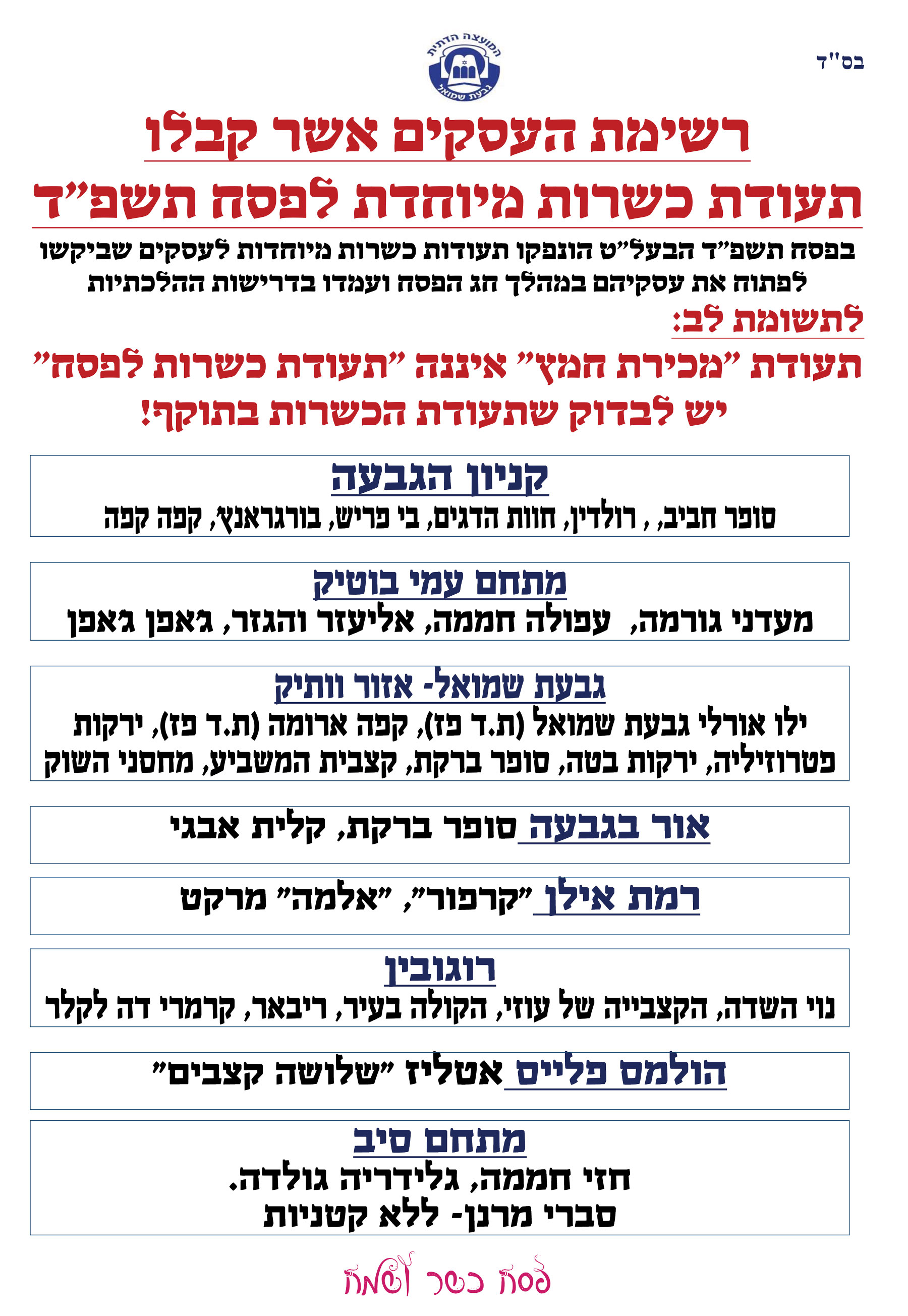 בקשת כשרות לעסק